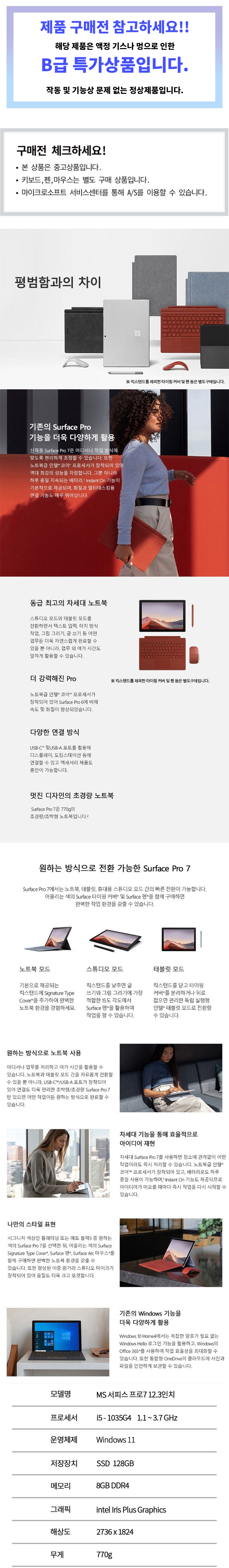 Microsoft 서피스 프로7 1866 i5 10세대 8GB SSD128GB 12.3인치 윈11 B급