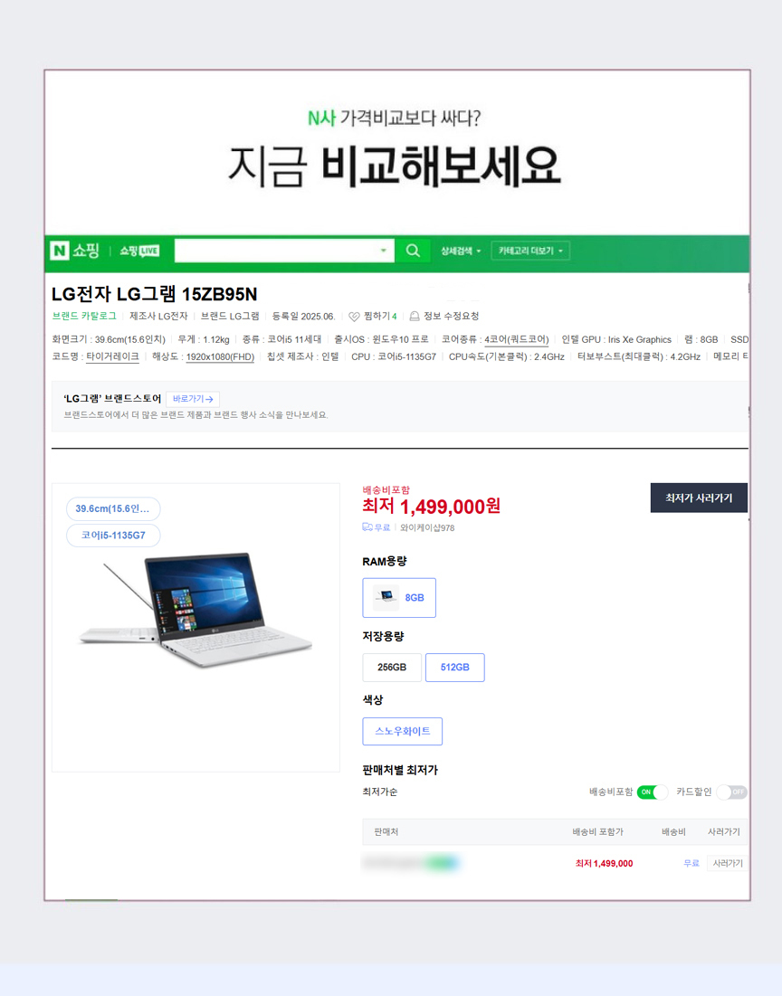 [LG전자] LG그램 15.6인치 15ZB95N 최신 인텔 i5 11세대 초고속 부팅 SSD선택가능 Win11정품 + 무선마우스 증정(추천) | TTM 리퍼비시 전문몰