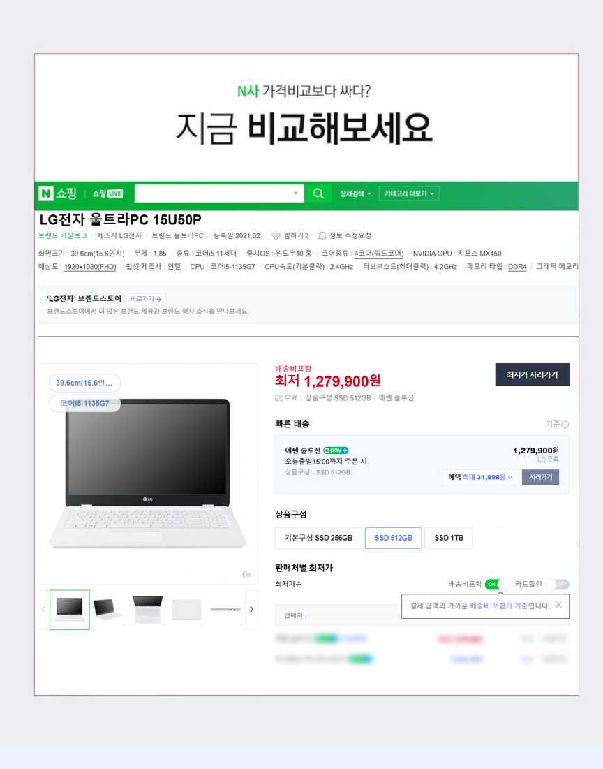 [LG전자] 울트라PC 게이밍북 15U50P 최신 코어i5 11세대 지포스MX450탑재 15.6인치 정품 윈도우11탑재 + 무선마우스 증정