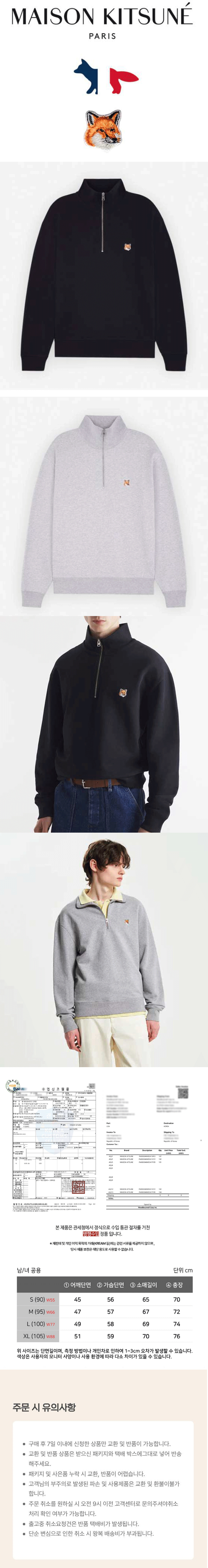메종키츠네 신상 최초 [MAISON KITSUNE] 메종키츠네 폭스헤드 남녀공용 컴포트 하프지퍼 맨투맨 티셔츠